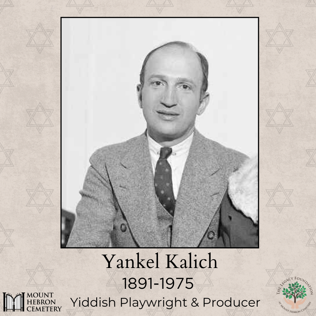 In 1914, Yankel immigrated to the United States where he found a job managing Yiddish theaters. He also published Hassidic sketches, novellas, travel narratives, articles and poems in American publications as well as in Canada and Poland. Yankel reworked and somewhat revised other author’s plays including Goldfadden, Shomer (Nokhum-Meyer Shaykevitsh, Latenier, Anshl Shor, V Sigal , N. Rakov and L. Freyman). Kalich also wrote “A Children’s Play,” which was translated into several languages. Yankel eventually opened up his own theater in Philadelphia.