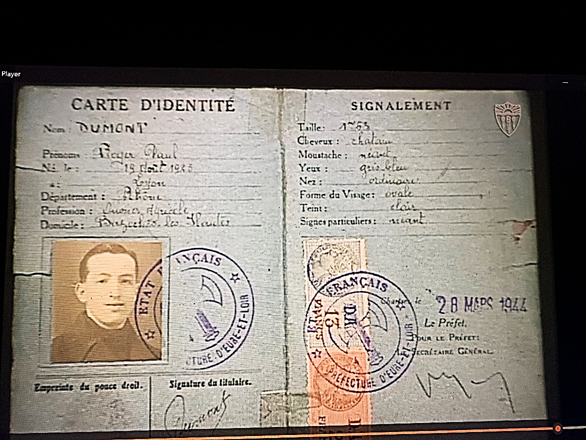 Daniel’s fake ID card with a non-Jewish name; it enabled him to flee Paris