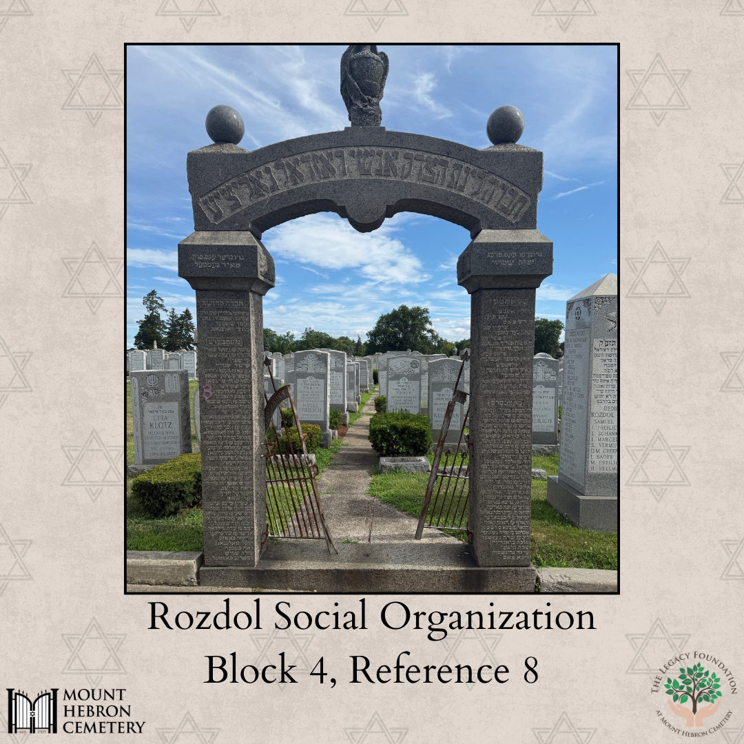 In a quiet row of Mount Hebron Cemetery in Queens, New York, stands a striking gray monument bearing a Hebrew inscription and the engraved names of leaders from a long dormant society. The stone is not simply a grave marker; it is a public act of remembrance. Erected by the Rozdol Society, Inc., this monument honors the Jews of Rozdol, a once thriving Galician town in what is now Ukraine. Though small in number today, the Rozdol Society’s presence in Mount Hebron keeps alive the memory of a Jewish community extinguished by war, yet carried forward by its American descendants.