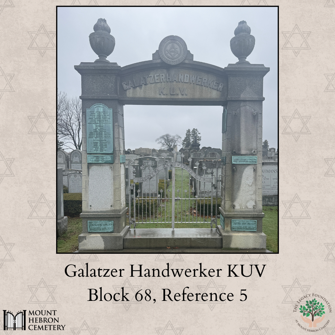 The Galatzer Handwerker KUV Society was established in New York by immigrants hailing from Galati, Romania. Initial Jewish presence in Galati dates to the 16th century. The Jews of Galati lived in a quarter named “The City Valley” until 1770. They then moved and developed a new quarter. The first synagogue was built in 1780, along with a bathhouse. From the 1820s on, a number of guilds were formed, which in turn credits Galati for influx of communal synagogues (Craftsmens, Carters, Chabad Hassids, tailors, etc.).